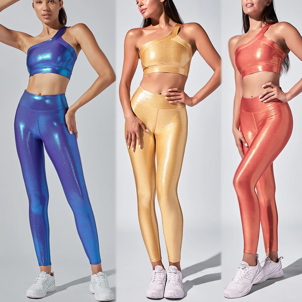 מותאם אישית מבריק ספורט ללבוש שמלות יוגה, חזייה סט כושר גופני ערכות כושר לנשים